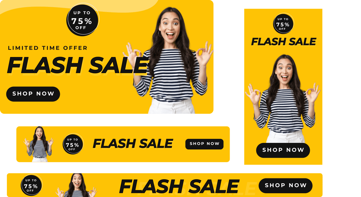 What makes our platform different from other tools you may have used? You don’t need to have any design experience nor do you need to spend time learning complex design tools. Second, we keep up with changing retailer and social media Display Banner Ad requirements. With our ad banner creator, you can start from scratch, or start with a design that’s already built and just make a few edits to customize it for your brand. With our Display Banner Ad maker, you can create banner ads for Amazon, Walmart, Instacart, LiveIntent, and many other channels.